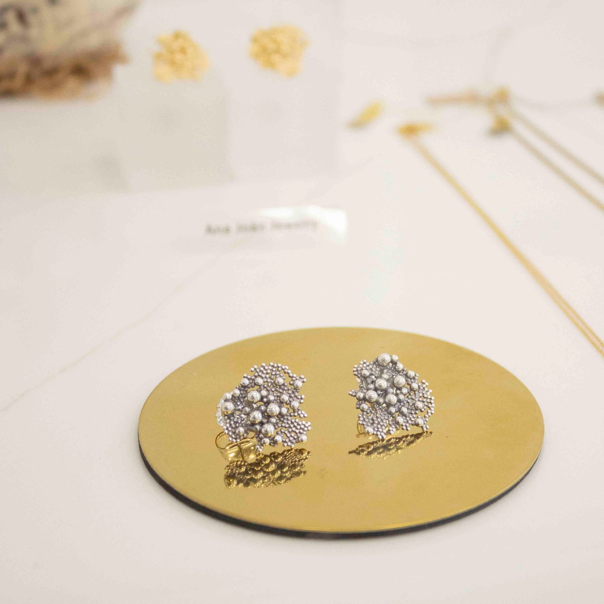As fontes de inspiração da joalheira estão à espreita na beleza das pequenas coisas. A produção autoral que tem lugar no seu atelier em Matosinhos é manual e com recurso a técnicas tradicionais de joalharia.